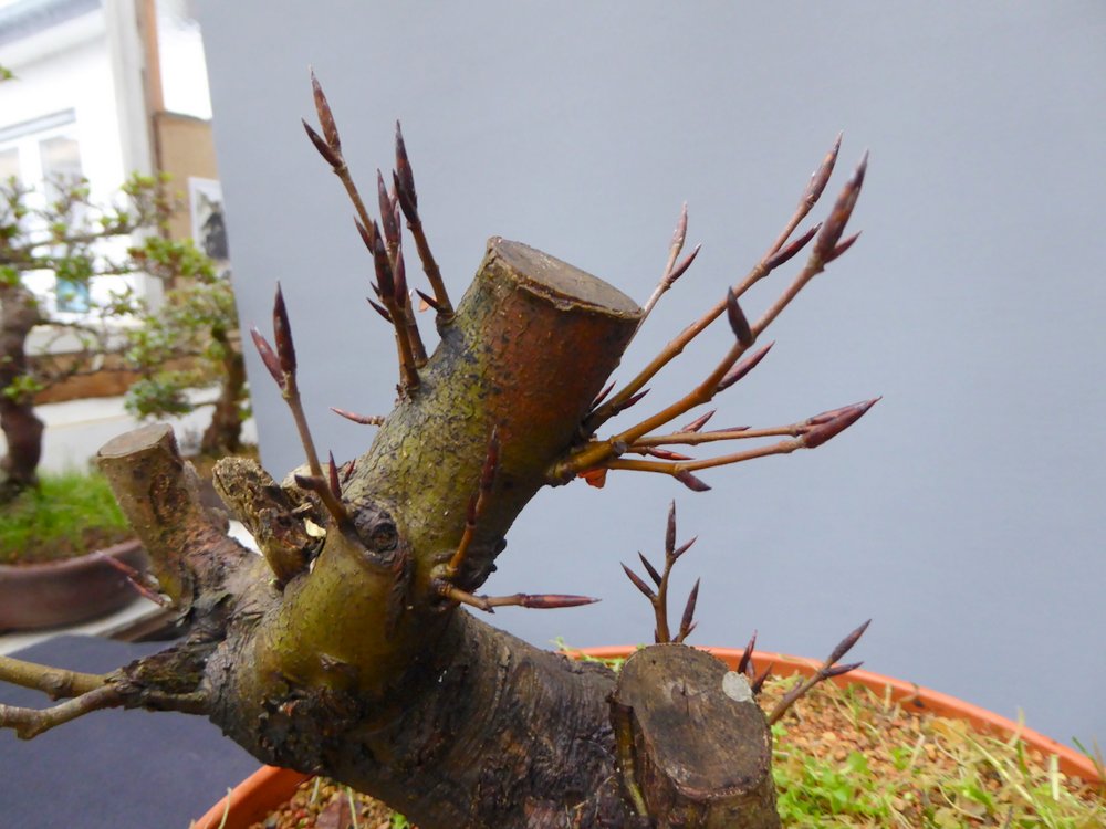 So eine fantastische Ausstellung wie die "Noelanders Trophy" kann eine richtige Initialzündung sein. Bei mir jedenfalls ist es so, denn die Eindrücke dort haben mich aus meinem tiefen Winterschlaf geholt. Gleich ans Werk bevor es anders wird, was ich allerdings nicht wirklich glaube. So habe ich heute die Prunus cerasifera neu positioniert und es hat sich gelohnt. Was für ein Wurzelwachstum in nur einem Jahr, was dem guten Substrat und ausreichendem Dünger zu verdanken ist. Da es für die Jahreszeit eigentlich zu warm ist, sind bereits die Blütenknospen schon zu sehen. Marija Haidic aus Kroatien, von der meine orientalische Hainbuche stammt, sagte mir, dass der Baum seit 2014 in dem Styroporbehälter steht. Das hat mich neugierig gemacht und siehe da, jede Menge frische Wurzeln. Also, warum lange warten, gleich in den Topf mit dem sehr schönen Baum. Die Schale ist ausreichend dimensioniert, so kann der Baum in diesem Jahr gut zulegen und ausserdem macht er in der Schale eine viel bessere "Figur". Dazu habe ich gleich an einer kleinen, heimischen Hainbuche die restlichen, vertrockneten Blätter entfernt und meine Arbeit von heute gleich fotografiert. Jeders Jahr ist es wieder ein Vergnügen an meinen Bäumen zu arbeiten...... ähhhh mich zu erfreuen. Denn was Spass macht, ist ja keine Arbeit.